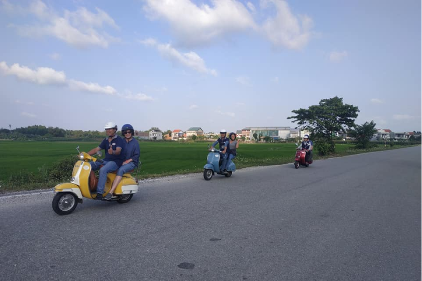 La matin, vous embarquerez sur votre vespa et commencerez à découvrir la paisible campagne autour d’Hué. Vous visiterez une maison communale ainsi qu’un marché local, vous pourrez observer la vie quotidienne des habitants et en apprendre plus sur leurs us et coutumes. Après avoir continué votre balade en vespa, vous découvrirez une pagode où vous pourrez rencontrer un moine et échanger avec lui sur le bouddhisme et son influence dans la vie des vietnamiens. Vous visiterez ensuite la maison d’une famille produisant 2 gâteaux à base de riz gluant : le Banh Chung et le Banh Tet. Vous pourrez goûter ces gâteaux accompagnés de thé vert.